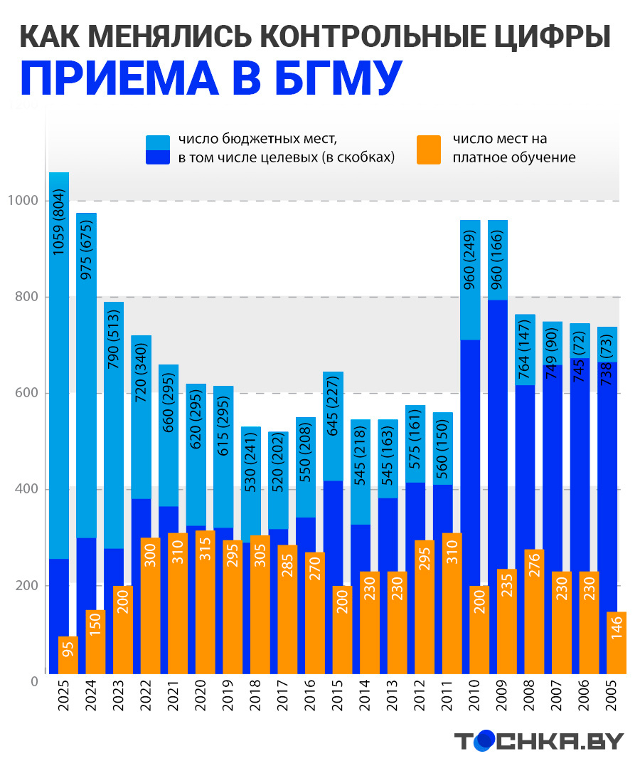 Tochka.by отправила вопросы в эти ведомства, чтобы получить подробные комментарии о том, как формируются контрольные цифры приема в медицинские университеты и с чем связана фактическая отмена платного обучения в этих вузах.